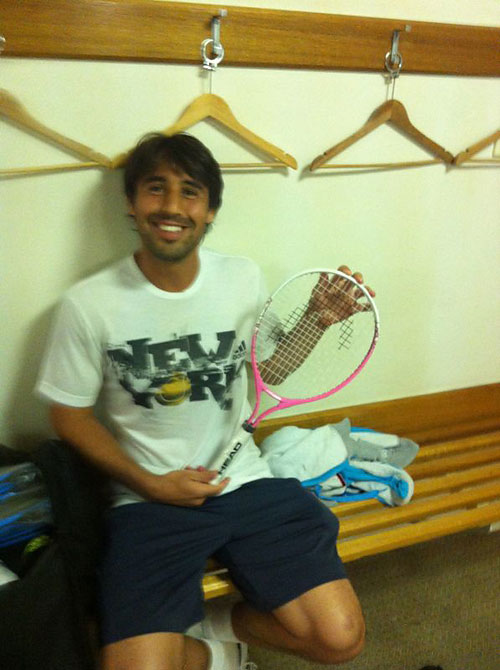 Marcos with baby Zahara's first racquet